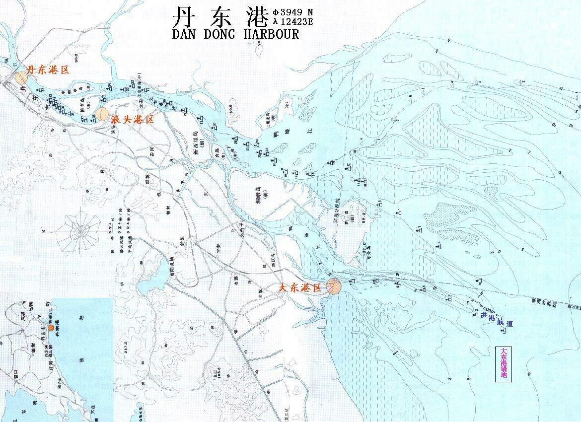 航道:浪头港区出港航道为鸭绿江,水深2-4米,有较完善的助航设施;大东港区出港航道,全长10海里,平均深9.1米。